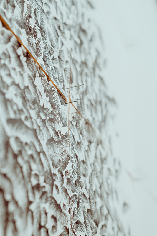 Le opere di Clelia Catalano in mostra scaturiscono da questo processo creativo, spontaneo e ripetitivo, rituale e ipnotico. Nelle due parole che compongono il titolo, sono racchiuse molteplici associazioni che ruotano attorno al tema del rapporto dell’uomo con l’ambiente e la natura.